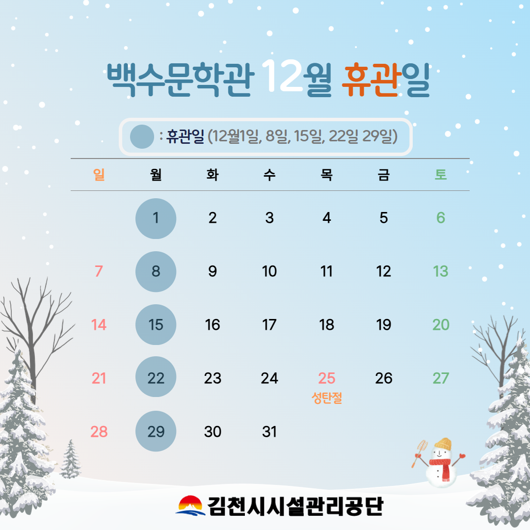📌 12월 휴관일 : 1일, 8일, 15일, 22일, 29일