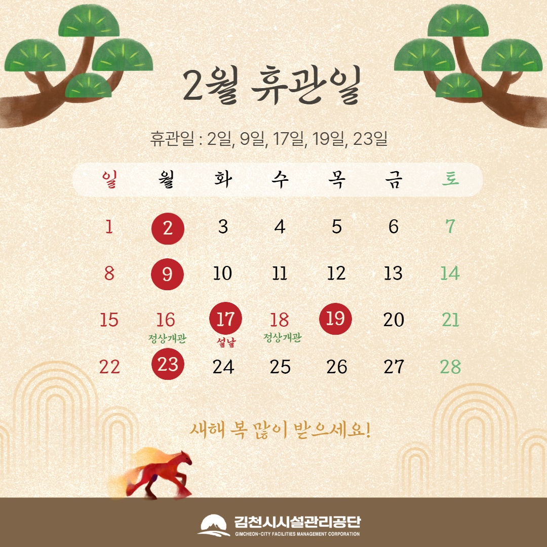 📌 2월 휴관일 : 2일, 9일, 17일, 19일, 23일