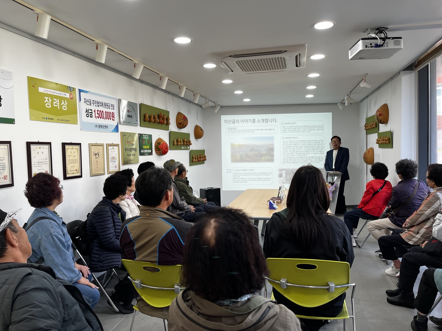 오후에는 ‘자산골 커뮤니티센터’에서 자산골 새뜰마을사업 소개 영상을 함께 시청하고, 사업 추진 과정과 주요 성과 등을 공유했습니다.