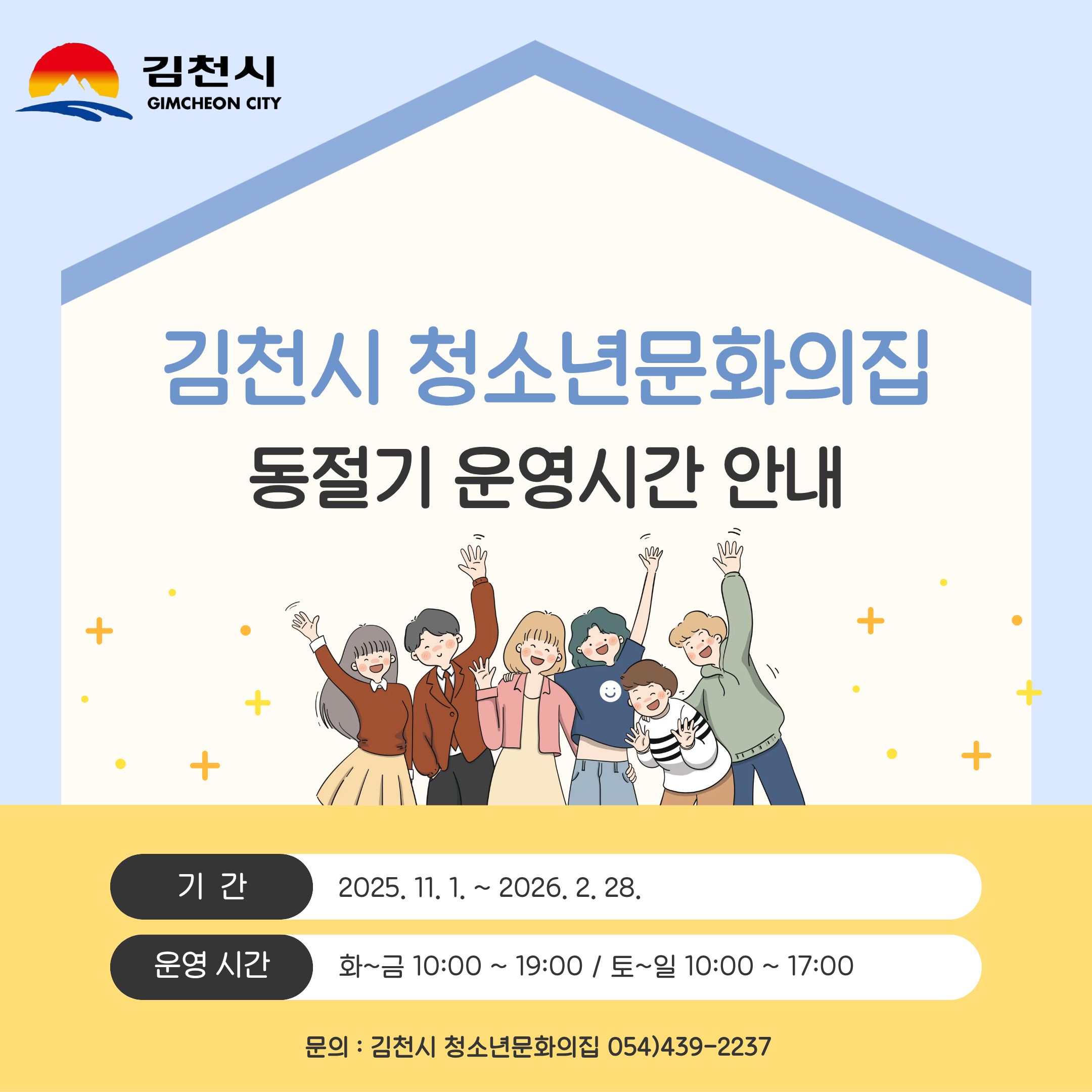 - 김천시 청소년문화의집 동절기(11월~2월) 운영시간 안내2025-10-31