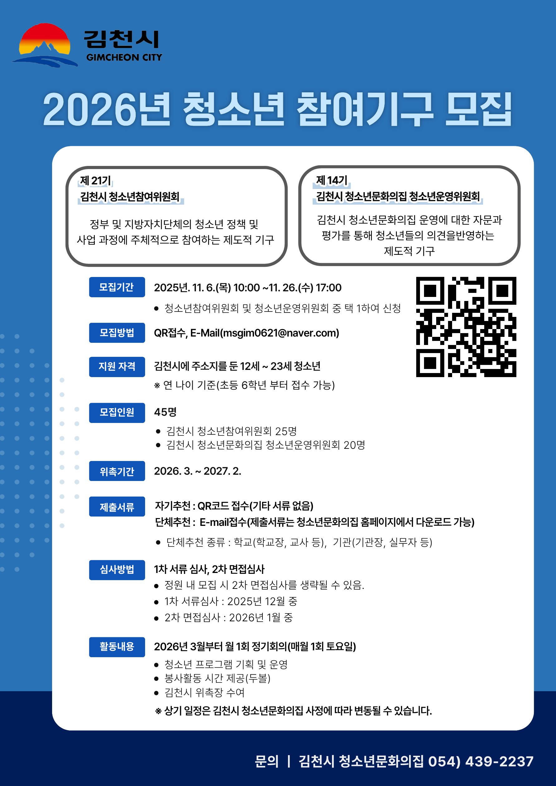더보기- 2026년 김천시 청소년 참여기구 모집 안내2025-11-04