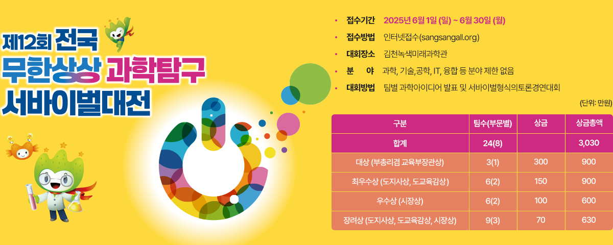 - 제12회 전국 무한상상 과학탐구 서바이벌대전 본선 진출팀 안내2025-08-01