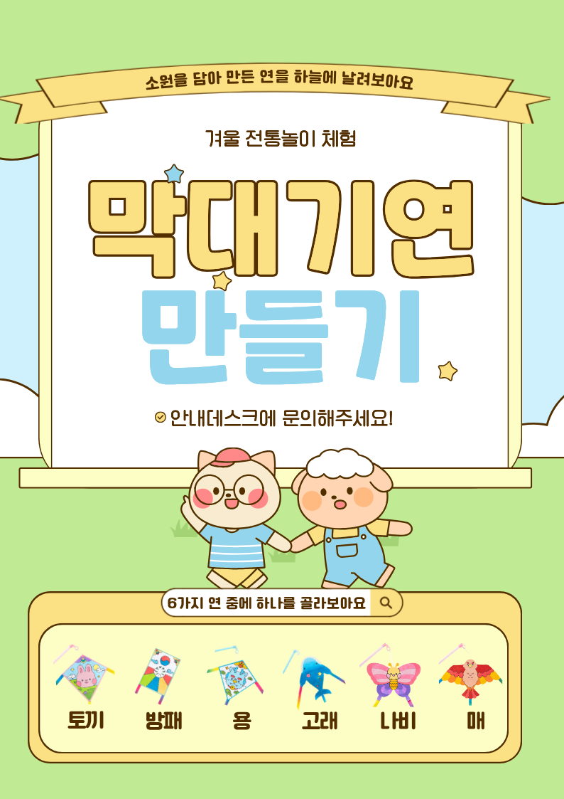김천시립박물관 1층 로비에서 직접 연을 만들어보는 체험프로그램을 운영합니다!