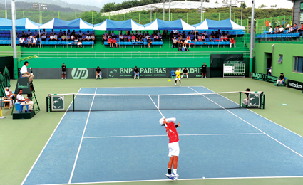 테니스장에서 테니스를 하고있는 모습 테니스장에서 테니스를 하고있는 모습